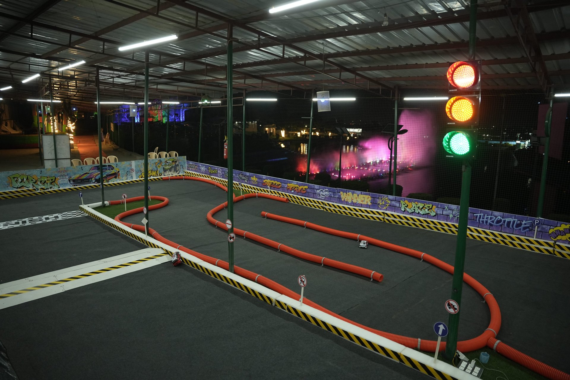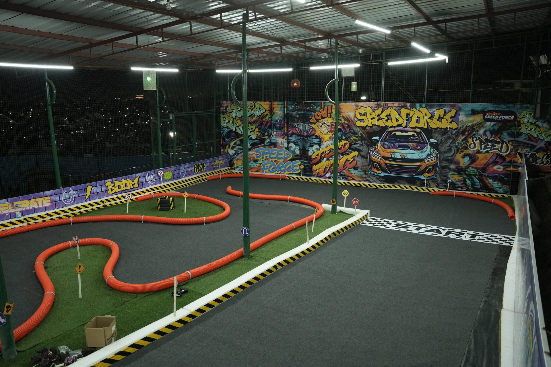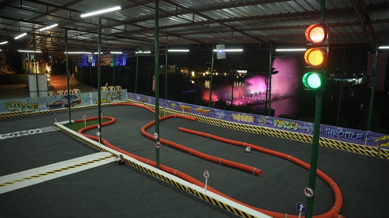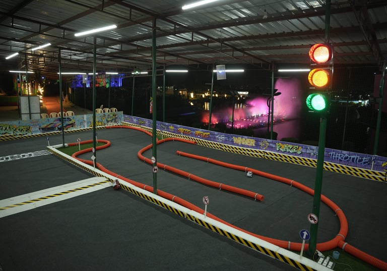 J&K’s First Professional RC Car Arena A dynamic track designed for 1/16 scale remote-control cars, encouraging hands-on learning about speed, physics & mechanics. The arena fuels excitement and skill-building through competitive races and interactive fun for all ages.