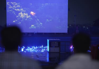 North India’s Largest Open-Air Cinema. Experience movies like never before on North India’s largest outdoor screen (60x40 ft) with high-quality projection and sound, perfect for public screenings, premieres, and private movie nights.